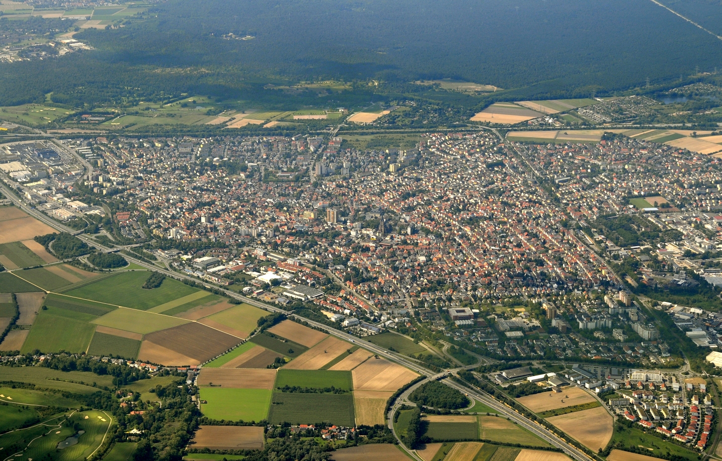 Trotz dieser zentralen Lage ist in der Gemarkung ein großes Waldgebiet erhalten geblieben, das als Bestandteil eines größeren Waldgebietes mit 27 Quadratkilometern über die Hälfte der 48 Quadratkilometer Gesamtfläche bedeckt. Es befindet sich auf Flugsandflächen und wird von zwei Binnendünenketten durchzogen. Sie sind die Grundlage für das Vorkommen von Trockenlebensräumen. Sandrasengesellschaften mit spezifischer Insekten- und Vogelfauna und mehrere Naturschutz- und Natura-2000-Gebiete sind dadurch bedingt. Dort vorkommende seltene Arten sind beispielsweise Heidelerche, Blauschillergras oder Kreuzkröte. Das Waldgebiet ist alt- und totholzreich und in weiten Teilen EU-Vogelschutz- und auch FFH-Gebiet. Beispielarten sind hier Klein- und Mittelspecht und Hirschkäfer. Der weitere landschaftliche Teilraum ist vom früheren Neckarverlauf geprägt.