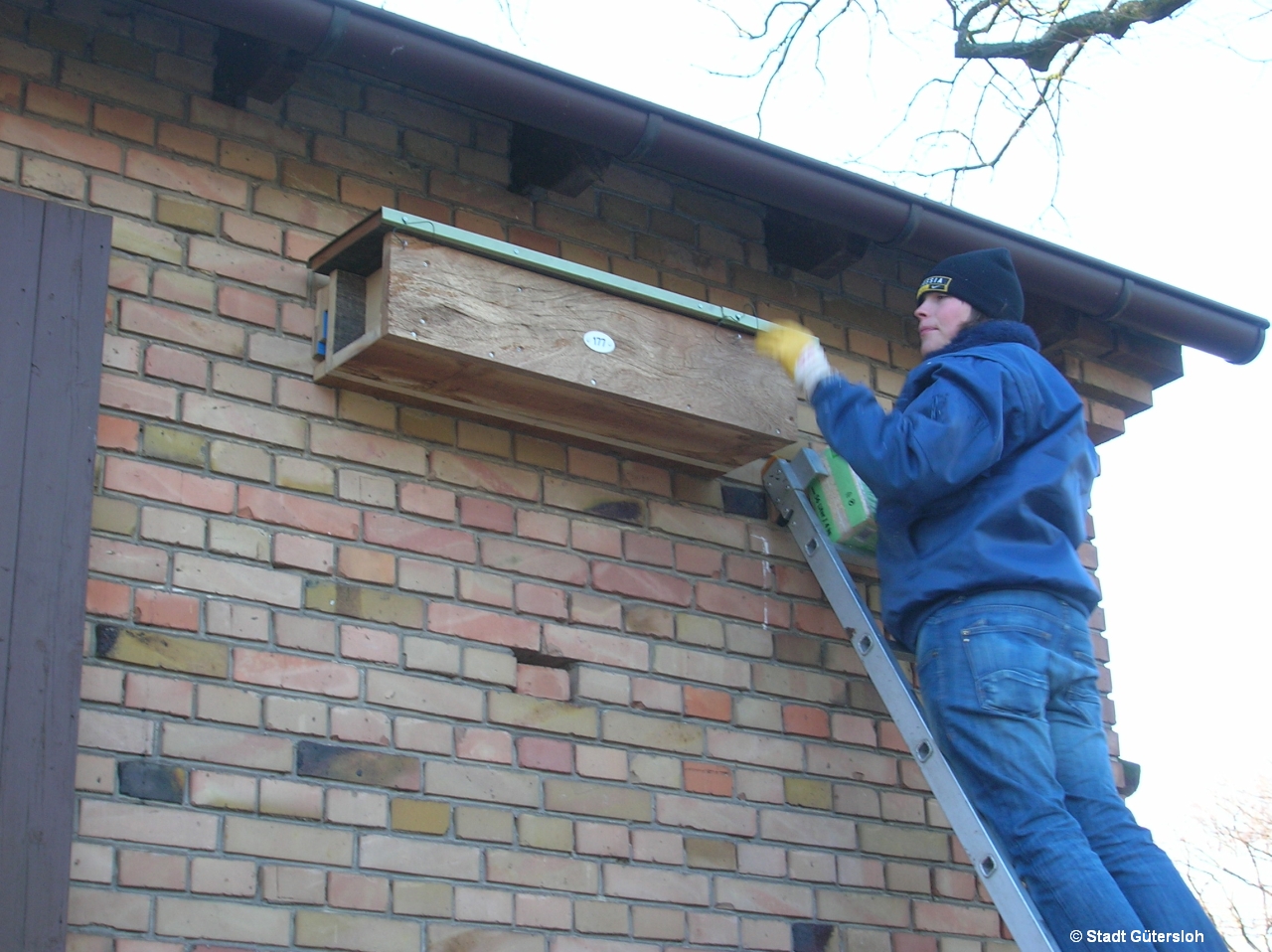 Seit Beginn der dreijährlich stattfindenden kreisweiten Kartierungen im Jahr 1996 beteiligt sich das städtische Umweltamt an der Erfassung des Steinkauzes auf dem Gütersloher Stadtgebiet. Angesichts des damals kurz vor dem Erlöschen befindlichen schwachen Bestands der Art wurde in Kooperation mit der Biologischen Station ein Schutzkonzept ausgearbeitet mit den Bausteinen regelmäßige Bestandserfassung, Information der Revieranwohner und Anbringen einschl. Pflege von Niströhren in geeigneten Lebensräumen.