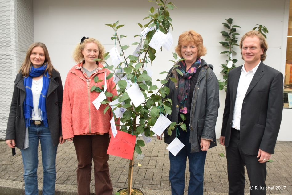 Die Bäume konnten am Stand der NABU-Ortsgruppe Norderstedt über ein Quiz zur biologischen Vielfalt gewonnen werden, welches der NABU gemeinsam mit der städtischen Koordinatorin für die Förderung der biologischen Vielfalt entwickelt hatte.