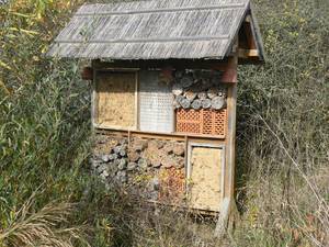 Neu angelegte Flachwassertümpel sowie kleine Landschaftsseen als Biotopinseln sind weitere Bausteine zum Landschafts- und Klimaschutz. Aber auch drei Streuobstwiesen gliedern sich sinnvoll mit ein. Lesestein- und Todholzhaufen, Insektenhotels sowie eigens aufgestellte Greifvogelstangen schaffen und ergänzen neue Lebensräume.