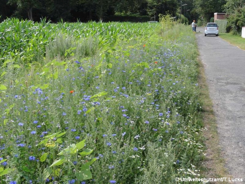Der Düllmannsweg wird wieder ein typischer Siedlungsrandweg, der zur Erholung und Naturbeobachtung einlädt, ein Lebensraum für viele Pflanzen- und Tierarten im Übergang zur freien Landschaft.