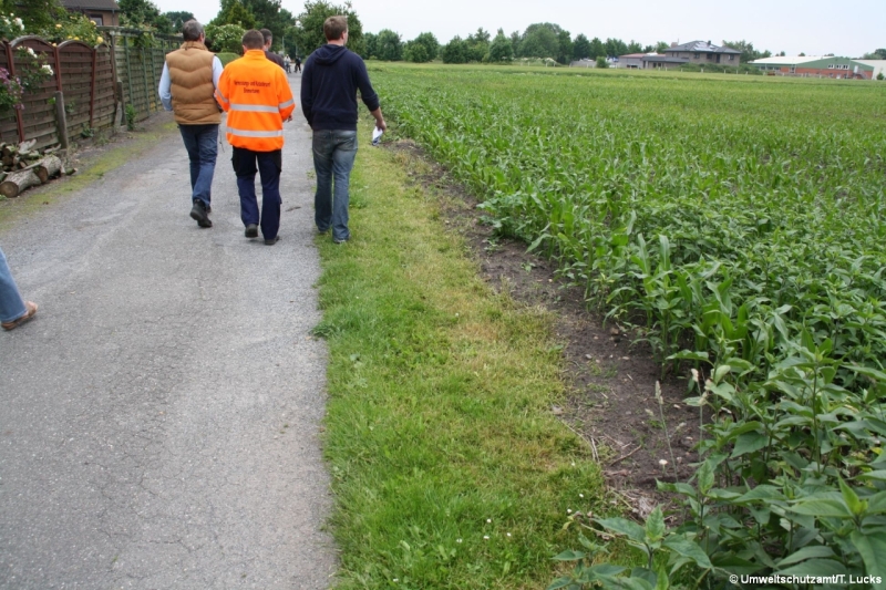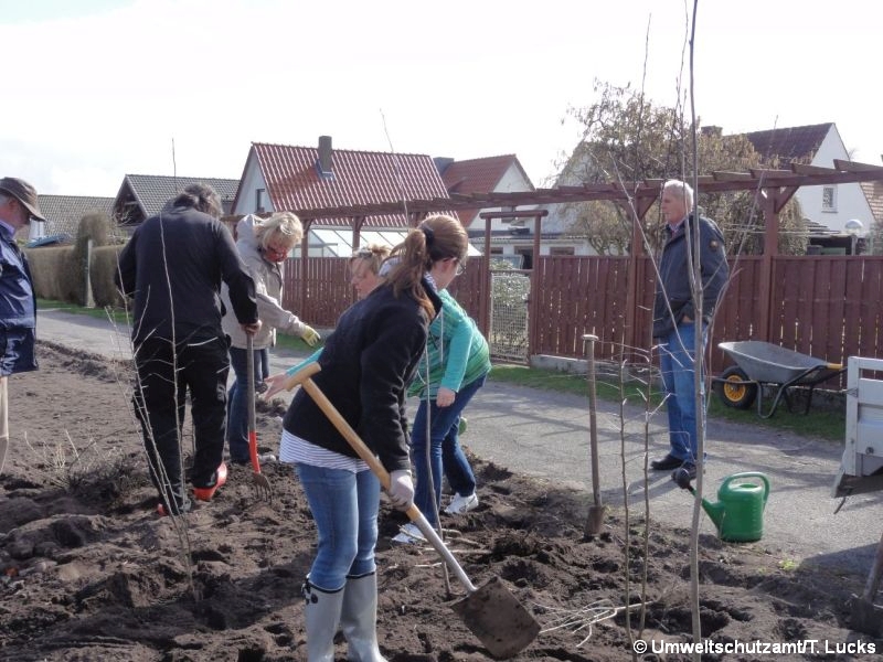 Gemeinsam mit Anwohnern, der Stadteilkonferenz Surheide, dem NABU sowie Schule und Kindergarten aus dem Stadtteil wurden am 19.04.2013 in einer tollen Aktion auf dem etwa 470 Meter langen Übergang von Stadt zu Land über 180 vom Umweltschutzamt gespendete Vogelnährgehölze gepflanzt und eine artenreiche Wiesenmischung angesät, unter anderem Kornblume, Wiesenflockenblume, kleiner Klappertopf und Kuckuckslichtnelke. Die Gehölze und der Blühstreifen sollen Vögeln und Bienen in der Stadt wieder Nahrung geben. Auch andere Tiere wie der Feldhase profitieren in Ackerrandstreifen vom erhöhten Nahrungsangebot.