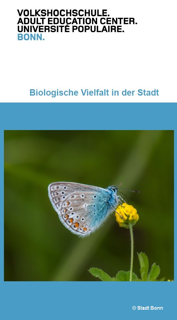 Die Untere Naturschutzbehörde beabsichtigt die Veranstaltungsreihe "Biologische Vielfalt in der Stadt" fortlaufend im Programm der Volkshochschule Bonn anzubieten.