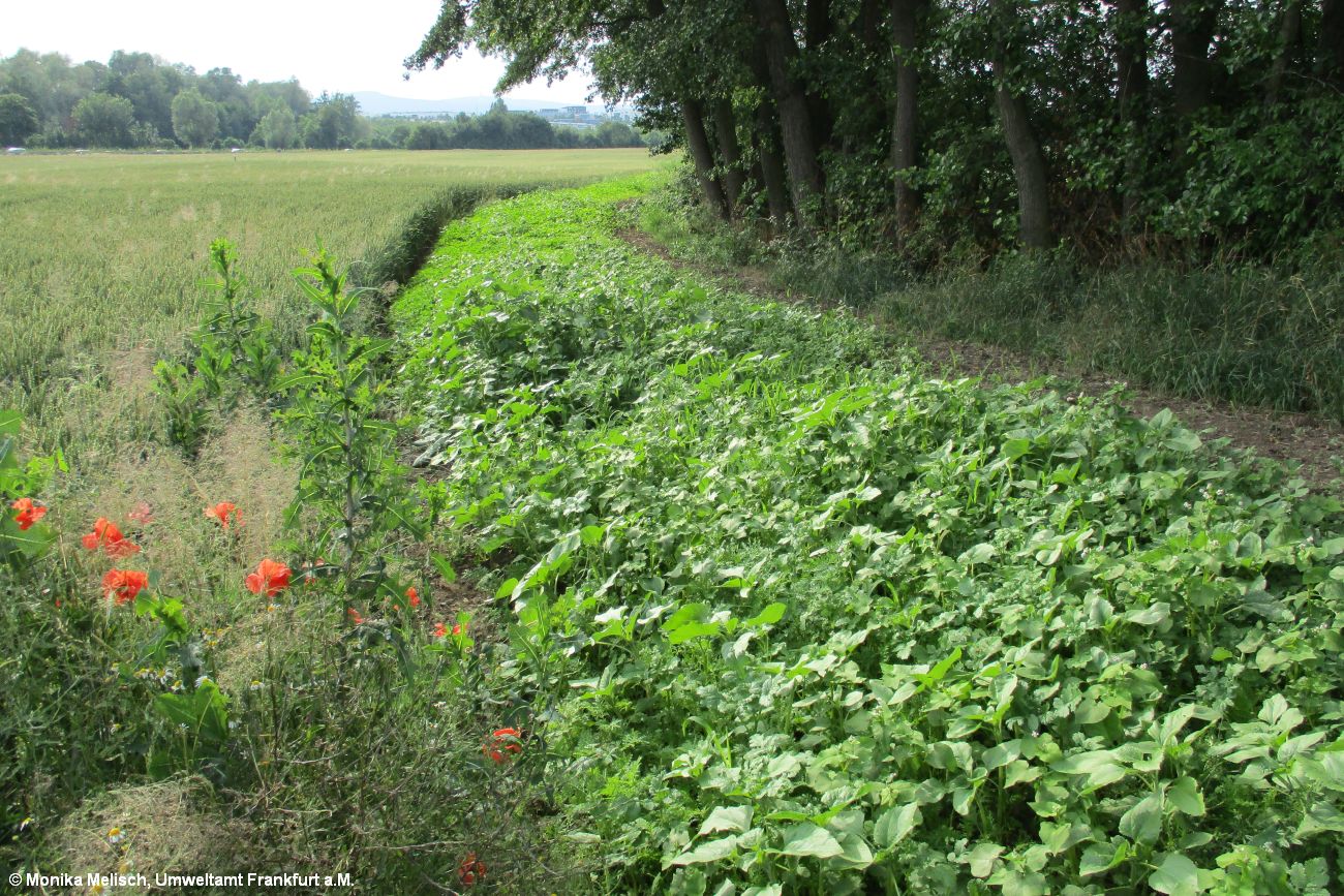 Die Stadt Frankfurt am Main verpachtet etwa 500 Hektar kommunale Flächen. Seit 2012 gilt in Pachtverträgen für Ackerland der Stadt die „Biodiversitätsklausel“. Diese schreibt vor, dass auf einem Prozent der von der Stadt gepachteten Fläche konkrete Maßnahmen für die Arten- und Biotopvielfalt durchgeführt werden müssen. Die Biodiversitätsklausel wurde vom Umweltamt im Rahmen einer Arbeitsgruppe mit Vertreterinnen und Vertretern der Frankfurter Landwirtschaft, der Stadtverwaltung und der landwirtschaftlichen Fachbehörde entwickelt. Ab einer Pachtfläche von mehr als 5000 Quadratmetern muss eine bestimmte Maßnahme umgesetzt werden. Sechs mögliche Maßnahmen stellt die Stadt derzeit zur Auswahl. Zum einen sind dies temporäre Maßnahmen, die alljährlich neu festgelegt werden können, wie die Anlage von Blühstreifen und –flächen, die Anlage von Lerchenfenstern oder Nacherntestreifen für den Feldhamster. Zum anderen können sich landwirtschaftliche und erwerbsgartenbauliche Betriebe auch für Dauermaßnahmen, wie das Anpflanzen von Einzelbäumen in der Feldflur oder die Neuanlage von Extensivgrünland, verpflichten. Die Landwirte reichen jährlich mit einem Meldebogen ihre geplante Maßnahme ein. Die landwirtschaftlichen und erwerbsgartenbauliche Betriebe reichen jährlich mit einem Meldebogen ihre geplante Maßnahme ein. Für die erfolgreiche Umsetzung der Biodiversitätsmaßnahmen durch die Landwirtschaft und die Weiterentwicklung der Biodiversitätsklausel sind ein regelmäßiger Austausch mit den einzelnen Bewirtschafteten sowie Vor-Ort-Kontrollen notwendig. Alle 75 landwirtschaftlichen und erwerbsgartenbauliche Betriebe, die städtische Flächen mit der oben genannten Mindestgröße pachten, haben sich mit ihren Pachtverträgen verpflichtet, Maßnahmen zur Förderung der biologischen Vielfalt in der Agrarlandschaft durchzuführen. Über die Klausel wurden im Jahr 2018 insgesamt über 80 Hektar Ackerfläche als Lebensraum für Tier- und Pflanzenarten verbessert. Eine Fortschreibung der Biodiversitätsklausel ist geplant.