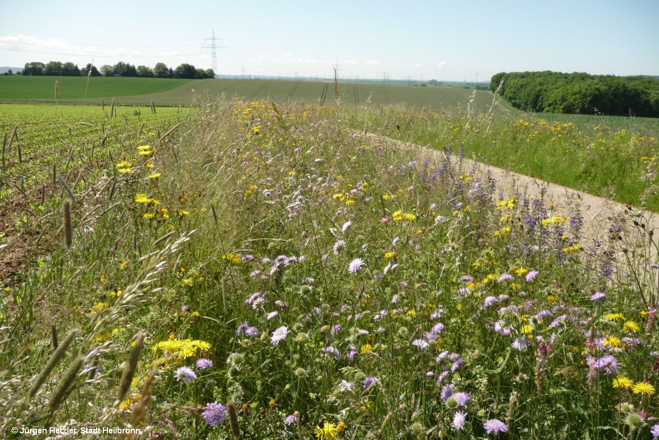 Die Heilbronner Böden sind fruchtbar und werden seit Menschengedenken intensiv landwirtschaftlich genutzt. Seit über 25 Jahren sorgt hier das Ackerrandstreifenprogramm der Stadt Heilbronn für Oasen für Tiere und Pflanzen. Im Rahmen des EU-notifizierten Agrarumweltprogramms erhalten landwirtschaftliche Betriebe finanzielle Zuwendungen von der Stadt für die Anlage von naturnahen, mehrjährigen Wiesenstreifen, Feldhecken und Obstbaumreihen. Der Förderbetrag schafft einen gerechten Ausgleich für die Aufwendungen für die naturschutzfachliche Anlage und Pflege und ersetzt außerdem den Gewinnausfall.