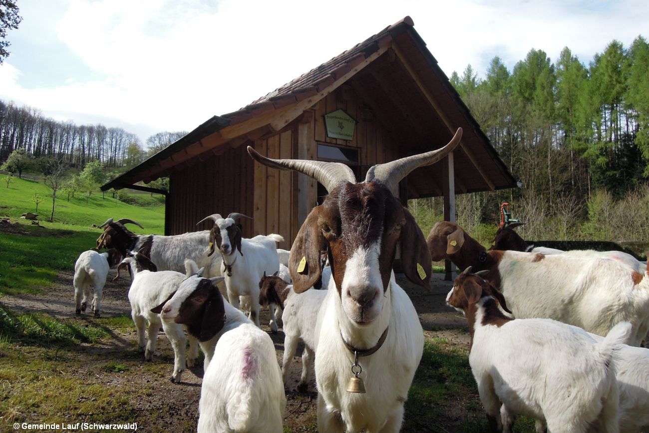 In der Gemeinde Lauf im Schwarzwald wird im Bereich des Laufbachtals die Offenhaltung des Tales zum Erhalt der Kaltluftströme gefördert. In Zusammenarbeit mit den Laufer Ziegenfreunden werden die Flächen beweidet. Für aufgegebene Flächen ist die Ziegenbeweidung eine gute Alternative zur kostenintensiven maschinellen Pflege. Ohne Freihaltung der Flächen verliert die Landschaft durch eine schnelle Verbuschung ihren Charakter und somit an Attraktivität. Von der Offenhaltung der Landschaft als Anpassung an den Klimawandel profitieren neben der Laufer Bevölkerung auch seltene Pflanzen, wie verschiedene Orchideenarten.