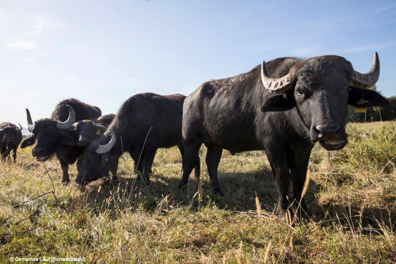 Die Gemeinde Lauf im Schwarzwald hat in der Exklave Laufer Mark im Rheintal ein Projekt zur ökologischen Bewirtschaftung unter besonderer Berücksichtigung der Historie gestartet. Die Gesamtfläche von 88 Hektar wurde über Jahrhunderte als Wiese genutzt, jedoch in den 1960er Jahren größtenteils umgebrochen. Zuletzt wurde dort überwiegend Mais angebaut. Ziel ist es, durch geeignete Aufwertungsmaßnahmen die biologische Vielfalt auf diesen Flächen zu fördern. Aktuell findet die Herausnahme der kommunalen Flächen aus der Intensivlandwirtschaft und die Einsaat von Wiesendrusch für die Mähwiesen statt. Die Flächen werden ganzjährig von Wollschweinen und Wasserbüffeln beweidet. Durch die Beweidung der Wollschweine wird die Fläche umgegraben und Lebensräume für bedrohte Tierarten wie Gelbbauchunke, Kiebitz oder Brachvogel geschaffen.