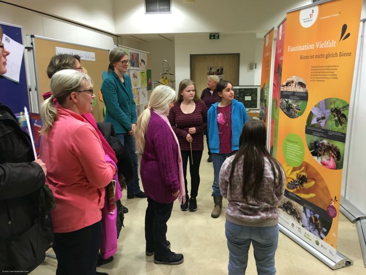 Für die interessierte Öffentlichkeit wurden zwei kostenfreie Veranstaltungen durchgeführt, an denen die Schülerinnen und Schüler durch die Ausstellung führten und ihr erworbenes Wissen sowie ihre Arbeiten präsentierten. Zudem gab ein Bienenexperte umfangreiche Informationen zu Wildbienen und biologischer Vielfalt und beantwortete Fragen der circa 120 Besucherinnen und Besucher.