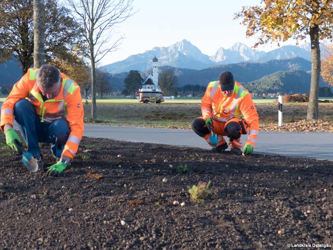 Der Landkreis Ostallgäu fördert die Umsetzung von biodiversitätsfördernden Maßnahmen auf eigenen Flächen. So werden zum Beispiel Flächen, die aus Ersatzzahlungsmitteln oder über Fördermittel des Bundes oder der Länder erworben wurden, grundsätzlich ökologisch aufgewertet. Insbesondere Niedermoorflächen werden extensiviert und renaturiert. Dabei werden beispielsweise Entwässerungsgräben schonend geräumt und angepasste Mahd- oder Beweidungskonzepte umgesetzt. Die Finanzierung der ökologischen Aufwertung erfolgt entweder durch Ersatzzahlungsmittel oder durch Bundes- oder Landesmittel, wobei auch hier der Kreis einen Eigenanteil trägt. Die Beweidung wird über das Vertragsnaturschutzprogramm oder die Landschaftspflegerichtlinie gefördert.