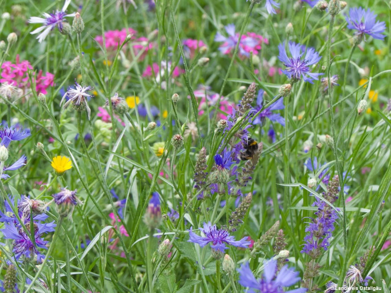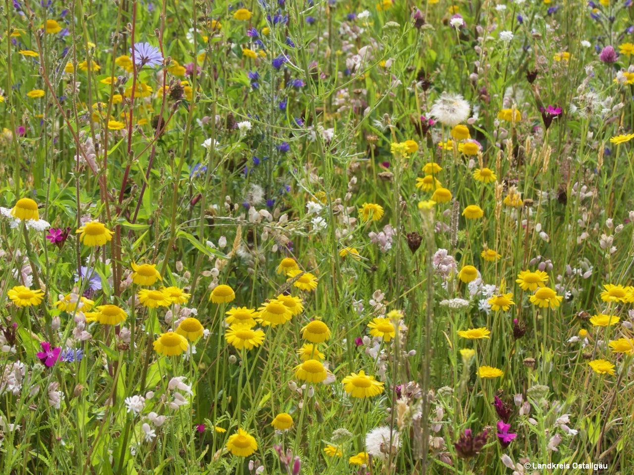 Der Landkreis Ostallgäu ist Träger des LEADER-Projekts „Wiese x 16“. Ziel des Projekts ist es über den Zusammenhang zwischen Pflege und artenreichen Wiesen zu informieren und einen Biotopverbund auf der Basis mehrerer kleiner Trittsteine zu schaffen. Hierzu wurden für die Bauhöfe der 16 teilnehmenden Gemeinden Workshops zum Thema Wiese und ökologisches Grünflächenmanagement organisiert. Eine Naturgartenplanerin begleitete und beriet die Gemeinden bei der Anlage eigener Blühflächen. Außerdem entstand ein Handlungsleitfaden zur Anlage und Pflege naturnaher Grünflächen, um das Wissen darum weiter zu verbreiten. Die Öffentlichkeit wurde durch begleitende Pressearbeit, Vorträge und Umweltbildungsveranstaltungen informiert und so für das Thema Artenschutz auf Grünflächen sensibilisiert.