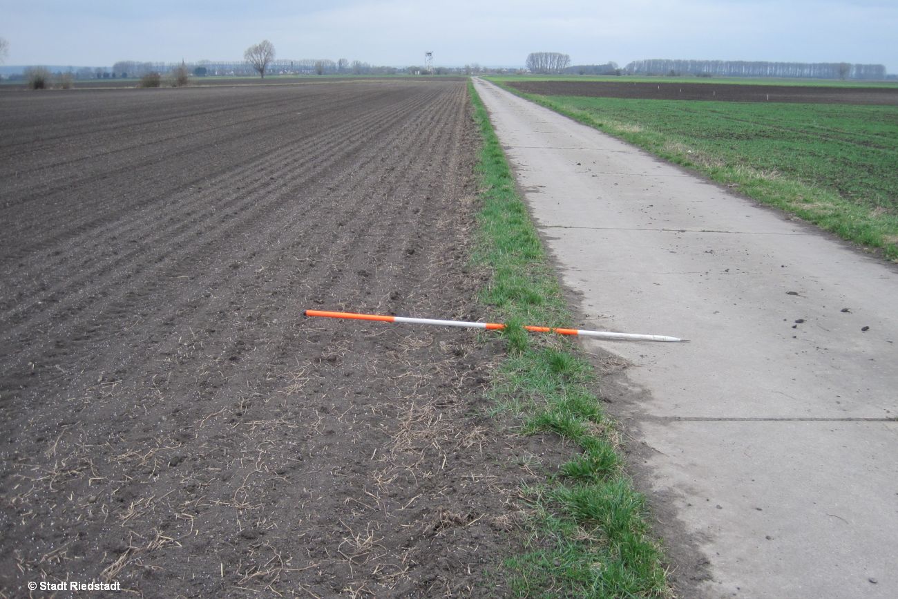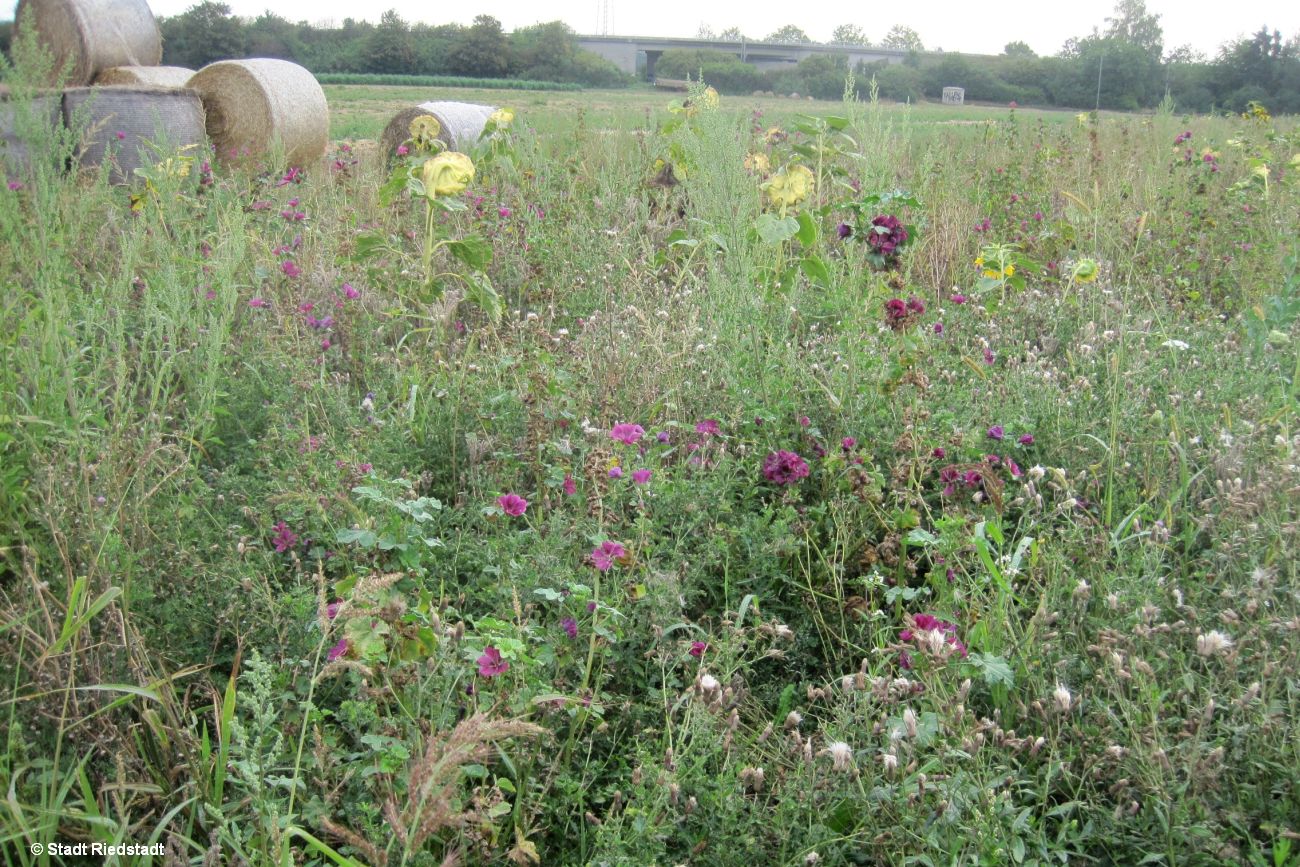 Auf Grundlage einer Feldwegesatzung gewinnt Riedstadt bewirtschaftete Wegraine zurück. Durch Luftbildauswertungen und stichprobenartige Kontrollen werden die Grenzen der Wege kontrolliert. Bei Missständen schreibt die Kommune die betreffenden Bewirtschafter an. Teilweise finden Anhörungen oder Verordnungen von Bußgeld statt. Die zurückgewonnenen Flächen werden meist der Selbstbegrünung überlassen und können im Folgenden wieder als lineares Vernetzungselement im Biotopverbundsystem dienen. Gerade für die biologische Vielfalt der Offenlandarten haben intakte Wegränder eine große Bedeutung in der Feldflur.
