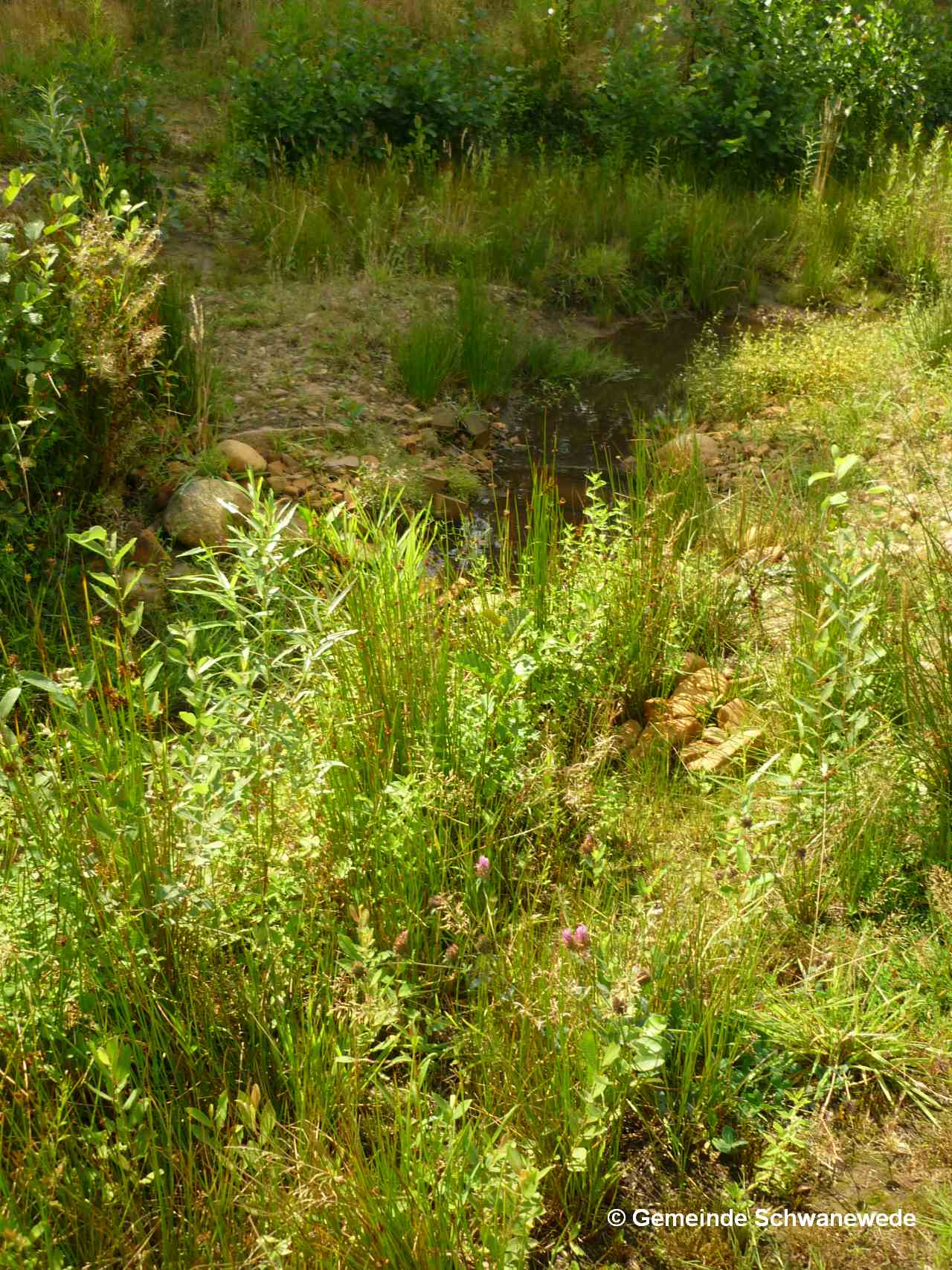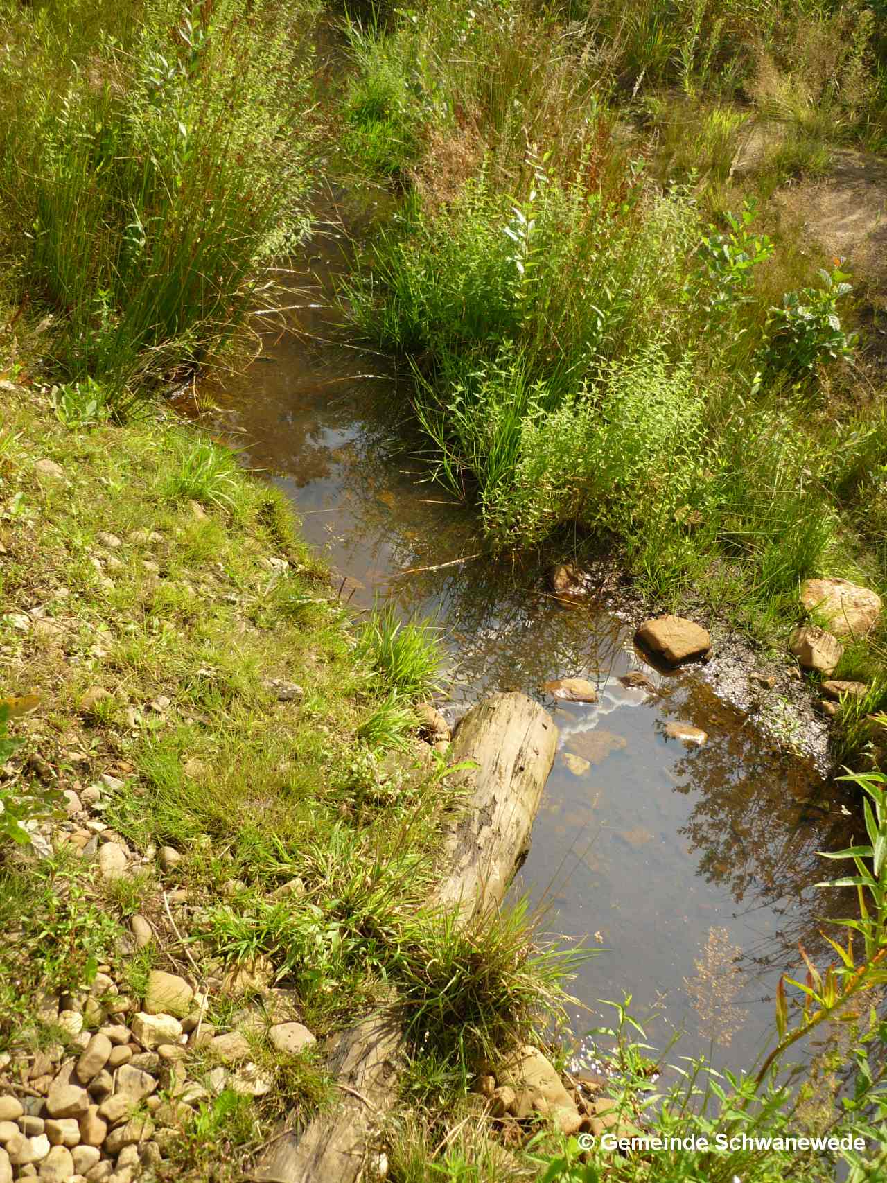 Auf einer Länge von rund 300 m hat die Schwaneweder Beeke ein neues naturnahes Bachbett mit Mäandern und flachen Ufern erhalten. Durch die Bodenabgrabungen wurde eine kleine Überschwemmungslandschaft hergestellt. Innerhalb dieses Bereiches kann sich der Bach nunmehr weitgehend eigendynamisch entwickeln. So hat sich in der Beeke bereits neuer Lebensraum für aquatische Lebewesen entwickeln können. Für weitere zwei Abschnitte der Schwaneweder Beeke liegt bereits die wasserrechtliche Genehmigung vor, so dass in den kommenden Jahren noch weitere ähnliche Umbaumaßnahmen erfolgen können. Neben der Erhaltung bzw. Rückgewinnung von Lebensraum dient dieses Projekt ebenfalls der Förderung von Bildung und Wissen. So werden entlang der renaturierten Beeke zahlreiche Umweltbildungsmaßnahmen für Kindergärten und Schulen sowie für interessierte Bürger veranstaltet.