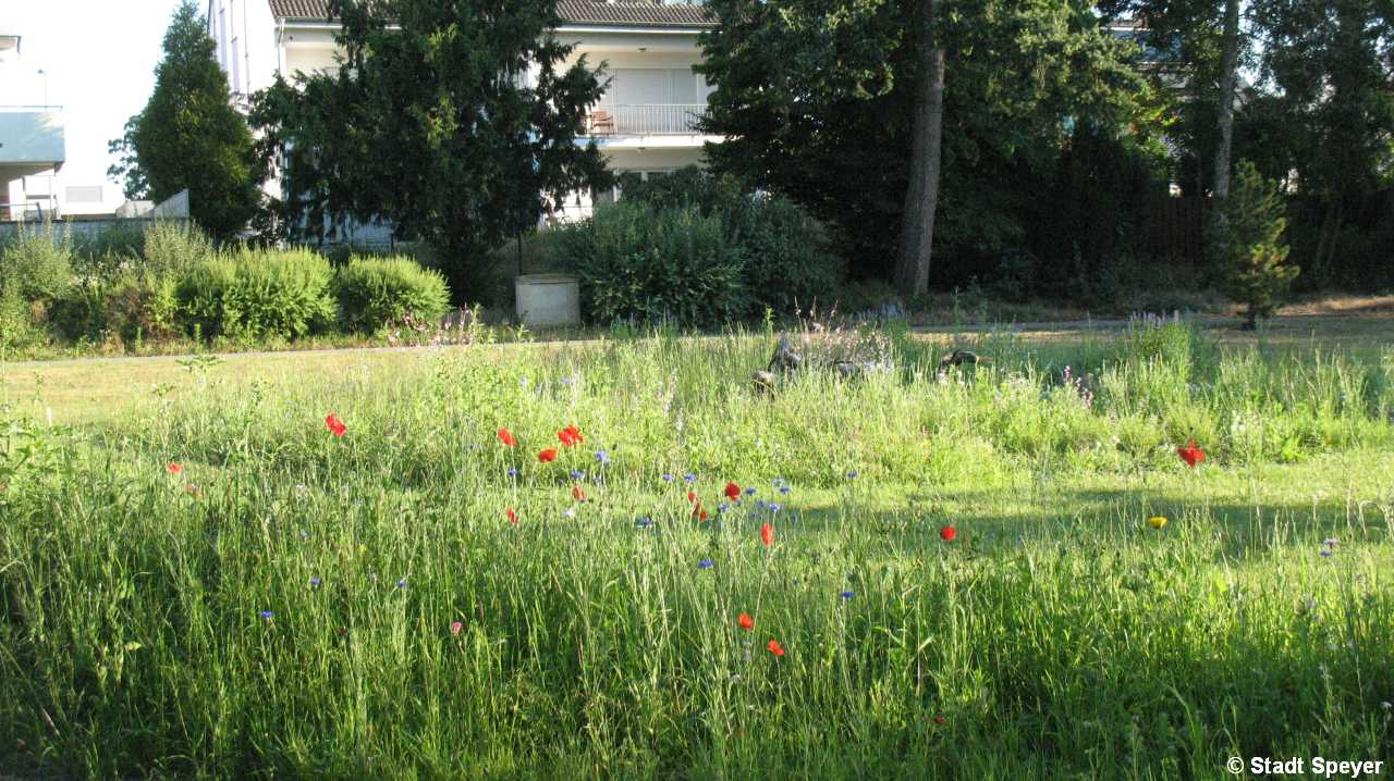 Wiesenflächen u. Saumvegetation bieten mit einer Vielzahl an Kräutern und Wildstauden, Nahrungs- und Nistraum für Schmetterlingen, Wildbienen u. vielen anderen Insekten, Nahrungsgrundlage wiederum für Eidechsen, Vögel, Kleinsäugetiere: eine Chance für Biodiversität in der Stadt.