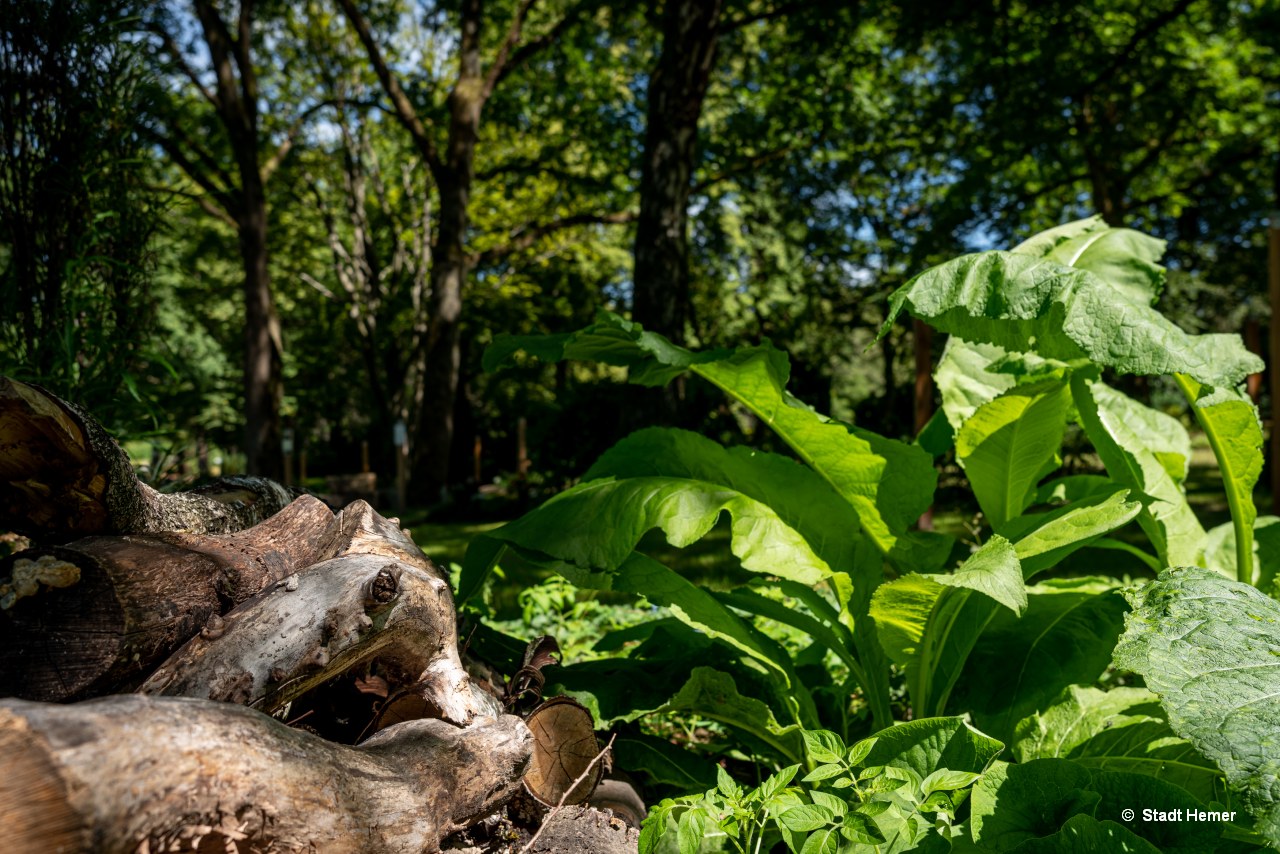 Ein weiterer umgestalteter Bereich ist der 2020 angelegte Garten der Schmetterlinge. Hier wurden zeitversetzt blühende Staudenbeete angelegt, die über das gesamte Jahr Pollen und Nektar liefern. Zusätzlich wurde hier Totholz eingebracht, eine Wildblumenwiese angelegt und Vogelnistkästen, Insektenhotels und Fledermauskästen wurden installiert.