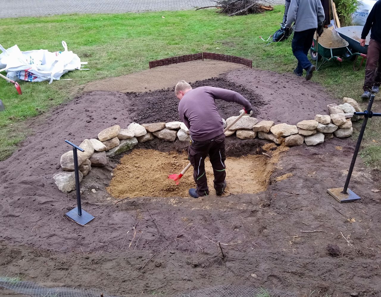 Um das notwendige Hintergrundwissen zu vermitteln, wird im Vorfeld ein etwa 2 stündiger Workshop über das Thema Wildbienen und die von uns entwickelte Fläche „InNature - Insel der Vielfalt“ angeboten. Die Durchführung wird durch die Kooperationspartner realisiert. Hier sollen die jungen Menschen gezielt für die Belange und die Bedrohung der heimischen Wildbienen geschult werden, um im Nachgang eigenhändig einen modellhaften Lebensraum für bodennistende Arten (Sandarium) anzulegen. Es wird also nicht nur theoretisches Wissen vermittelt. Durch die praktische Arbeit wird eine emotionale Identifikation gefördert, die Besiedelung durch Insekten kann im Laufe der Zeit erlebt werden und unterstützt die weitere Auseinandersetzung mit dem Thema. Es werden Bestimmungstafeln für die häufigsten Wildbienenarten verteilt.