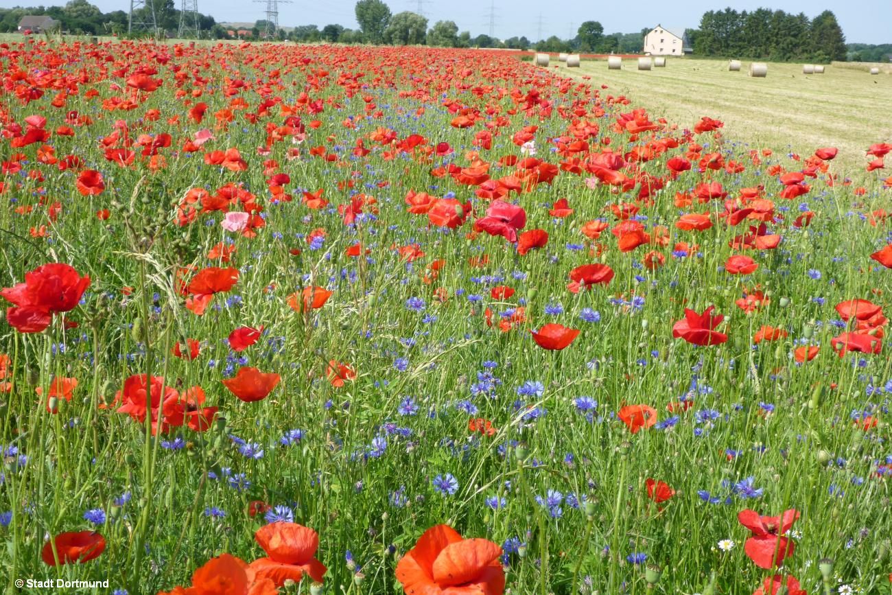 Pachtflächen der Stadt Dortmund dürfen nicht mit Klärschlamm und Glyphosat bewirtschaftet werden. Auf einzelnen Flächen in Naturschutzgebieten und auf Ausgleichs- und Ersatzflächen müssen weitere Vorgaben eingehalten werden. Die Nutzung chemisch-synthetischer Dünge- und Pflanzenschutzmittel, Wachstumsregler und der Anbau gentechnisch veränderter Pflanzen sind dort verboten. Zudem fördert die Anlage von Blühstreifen die biologische Vielfalt. Um die Vorgaben einzuführen wurden mit den Pächtern Nachtragsverträge zu den bestehenden Verträgen geschlossen.