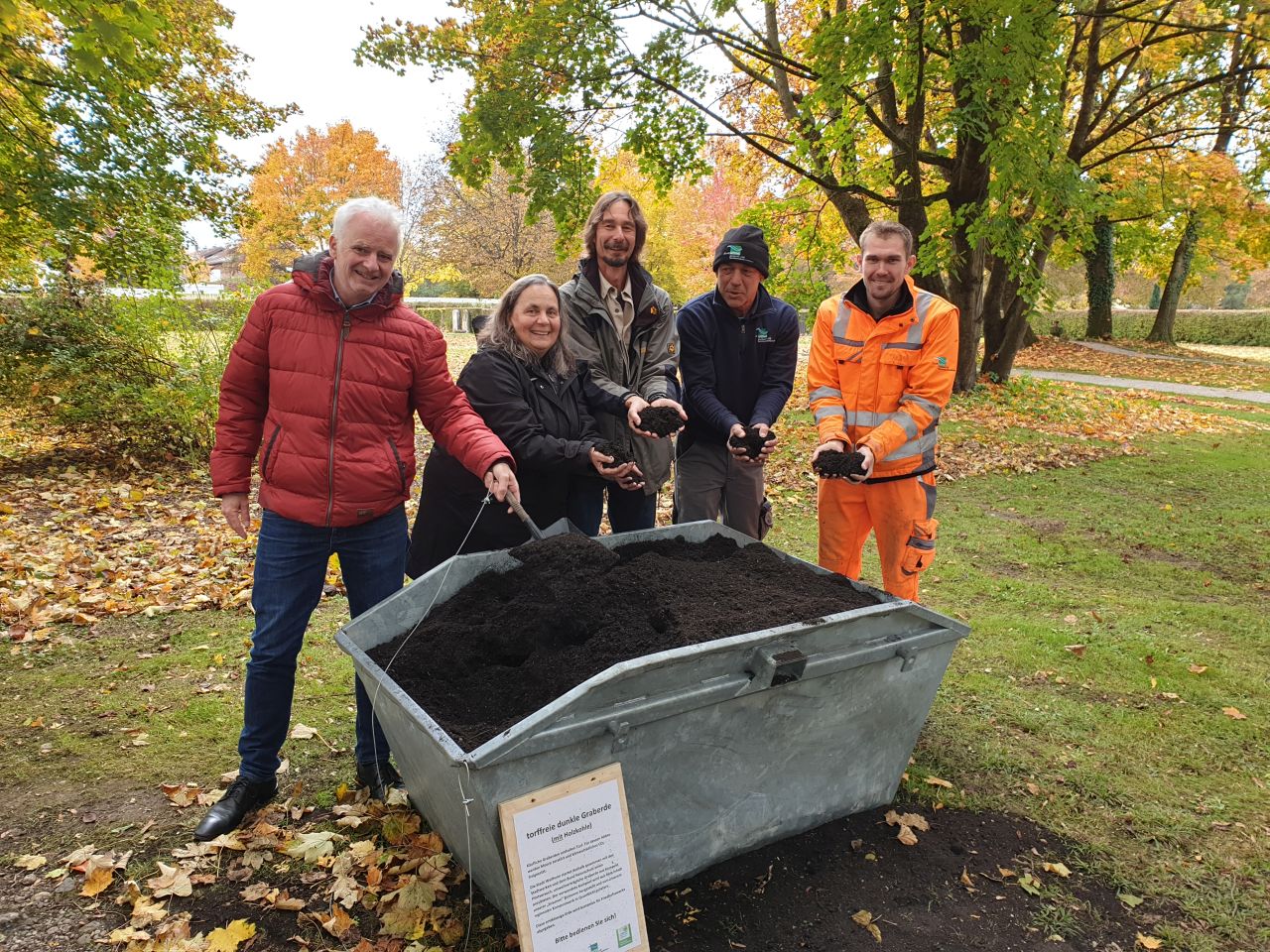 Die Kreisgruppe des Bund Naturschutz Weilheim-Schongau hat zusammen mit dem Arbeitskreis "Natur" der Weilheimer Agenda 21 nach einem adäquaten und klimaverträglichen Ersatzprodukt geforscht und eine eigene Graberde entwickelt. Diese besteht zu 2/3 aus regionalem Kompost aus der Biotonne (Siebung 8 mm), zu 1/3 aus regionalem Kompost aus Grünabfällen (12 mm) sowie schadstoffzertifizierter Holzkohle für die dunkle Färbung (6mm).