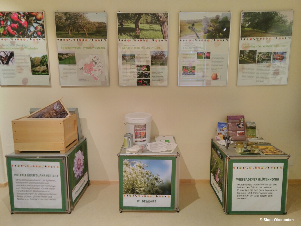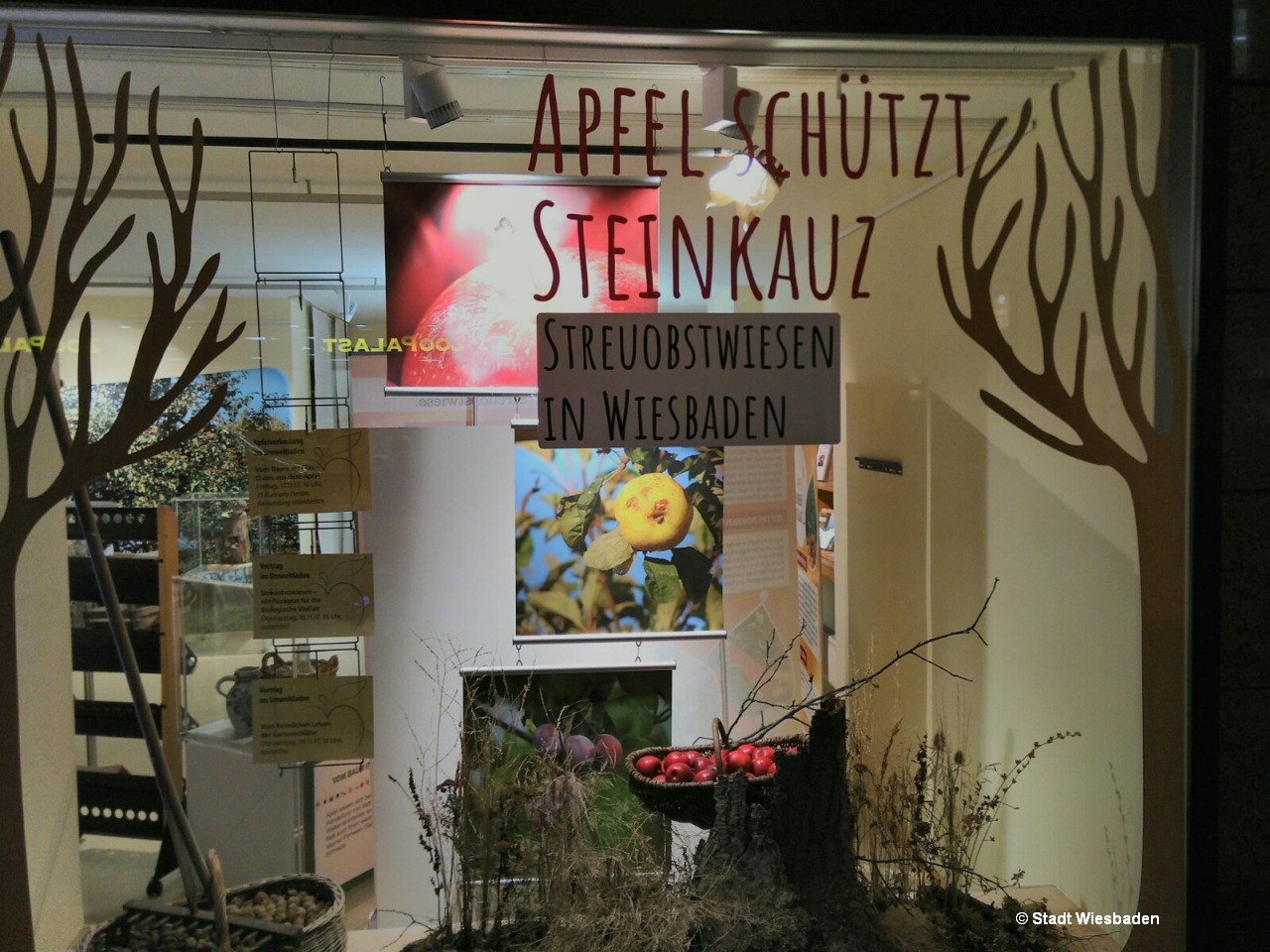 Eine Ausstellung im Umweltladen, mit einem facettenreichen Rahmenprogramm, hat drei Monate lang die Wiesbadener Streuobstwiesen in das Licht der Öffentlichkeit gerückt. Über 450 Interessierte besuchten in dieser Zeit die Ausstellung, die mit einer eigens entwickelten Posterserie, Schautafeln und Exponaten anschaulich darstellen konnte, warum diese einzigartigen Biotope so besonders schützenswert sind.