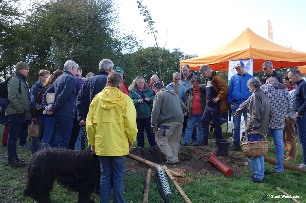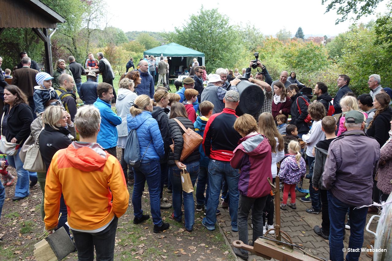 Der Aktionstag „Streuobstwiese erleben“ war dabei ein besonderes Highlight des Projektes. Über 900 Besucher nutzen den Tag um die vielfältigen Aktionen und Informationen von mehr als ein Dutzend Vereinen, Gruppen und Institutionen vor Ort zu erleben. Alle waren begeistert von der Idee, die lokalen Akteure rund um das Thema „Streuobstwiesen in Wiesbaden“ zu vernetzten und sich gemeinsam in der Öffentlichkeit zu präsentieren. Weit über diesen Tag hinaus wirken die an diesem Tag gebildeten neuen Partnerschaften, wie auch die an die Besucher verschenkten und in Wiesbaden gepflanzten 200 Obstbäume und über 80 Nisthilfen.