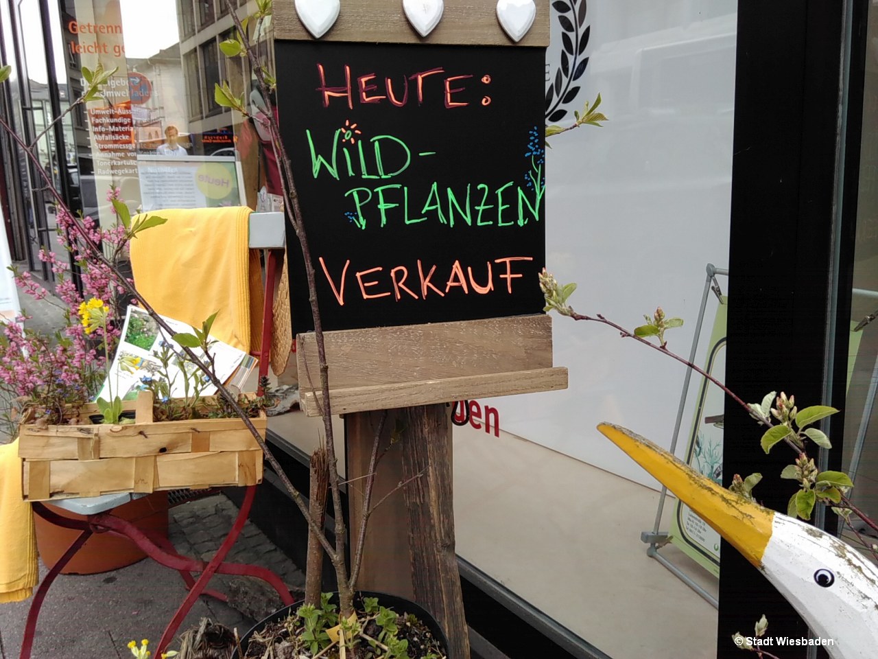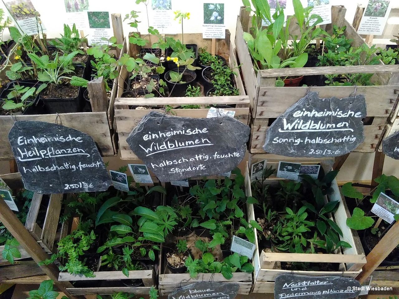 Zum Verkauf werden über 1000 Wildpflanzen in rund 150 einheimischen Arten angeboten. Die sonst kaum erhältlichen Wildblumen werden in der Region ökologisch produziert und ausschließlich in gebrauchten Töpfchen aufgezogen. Im Umweltladen werden die Pflanzen nach ihren Standortbedürfnissen präsentiert. Drei Expertinnen des Naturgarten e.V. beraten ausführlich zur Bodenansprüchen, Blütezeit und Pflege.