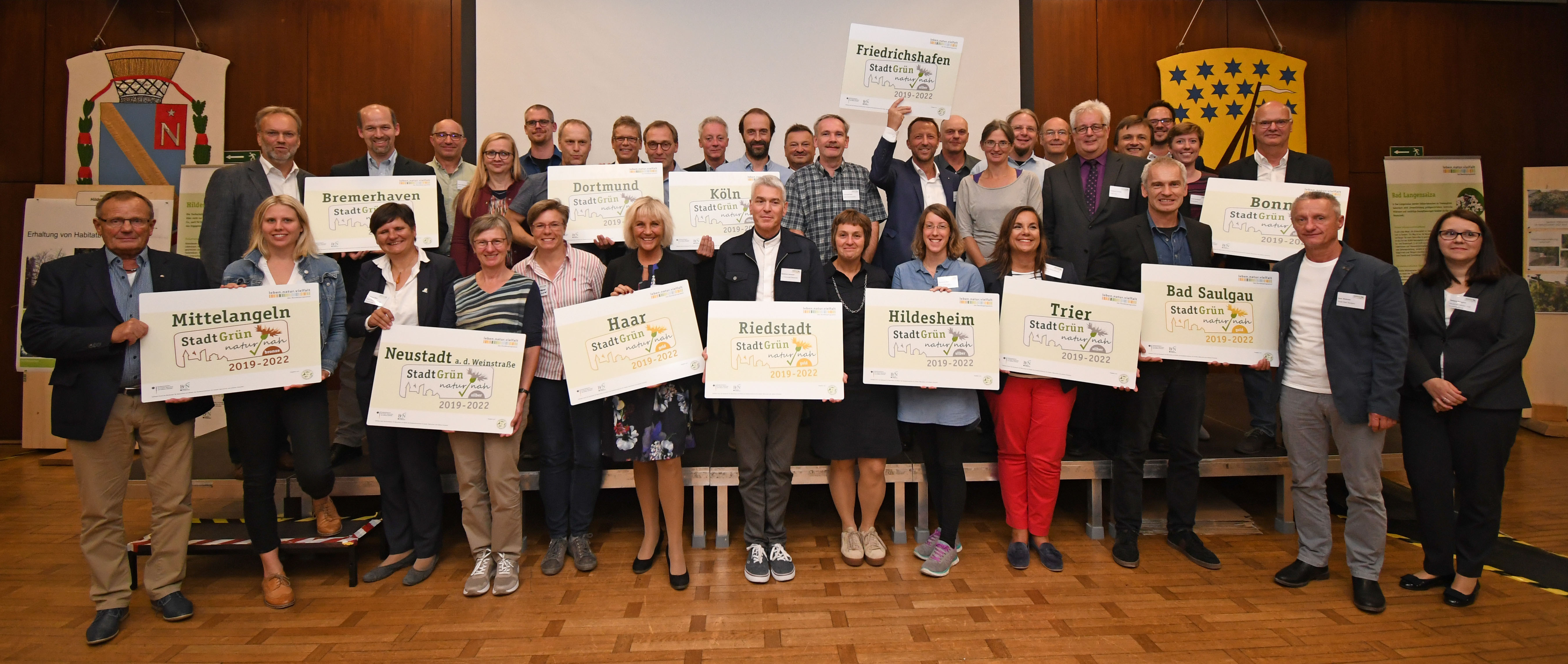 Nach einer Pilotphase in fünf Städten wurden nun in der ersten öffentlichen Ausschreibung 14 weitere Kommunen mit dem Label „StadtGrün naturnah“ in den Kategorien Gold, Silber und Bronze ausgezeichnet. Bad Saulgau in Baden-Württemberg, Riedstadt in Hessen sowie die Gemeinde Haar in Bayern erhalten das Label in Gold. Auszeichnungen in Silber und Bronze gehen an die Städte Bad Langensalza, Bonn, Bremerhaven, Dortmund, Friedrichshafen, Glauchau, Hildesheim, Köln, Mittelangeln, Neustadt an der Weinstraße und Trier. Das Label gilt für den Zeitraum 2019 bis 2022 und kann nach drei Jahren durch eine Rezertifizierung erneuert werden.